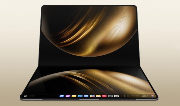 另外一款 MateBookFold 非凡大师则通过业界领先的折叠屏技术,打造出全球商用最大 18 英寸折叠电脑,它折叠时为 13 英寸展开后为 18 英寸,重量也只有 1.16kg,让大屏幕和便携性可以兼得。得益于折叠屏的特性,它可以为用户提供丰富的使用方式,折叠状态下,上半部分可以当做屏幕,搭配上磁吸键盘,形成传统笔记本形态,完全展开状态下,可以当做是一个超大平板电脑,满足用户不同场景的需求。