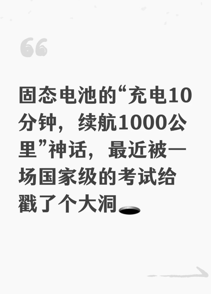 “充电10分钟,续航1000公里,永不自燃”——固态电池曾被捧为新能源汽车的“终极解决方案”,让无数消费者翘首以盼。但近日A股策略,这场被资本热捧、车企力推的技术神话,却被一场国家级测试戳破:国家投入60亿元的固态电池专项攻关项目,2025年测试结果“难言理想”,安全性、工程化、成本三大死结仍未破解。摩根大通直接点明“安全性是最大障碍”,而业内更是给出残酷预判:真正规模化商用至少要等到2030年后。